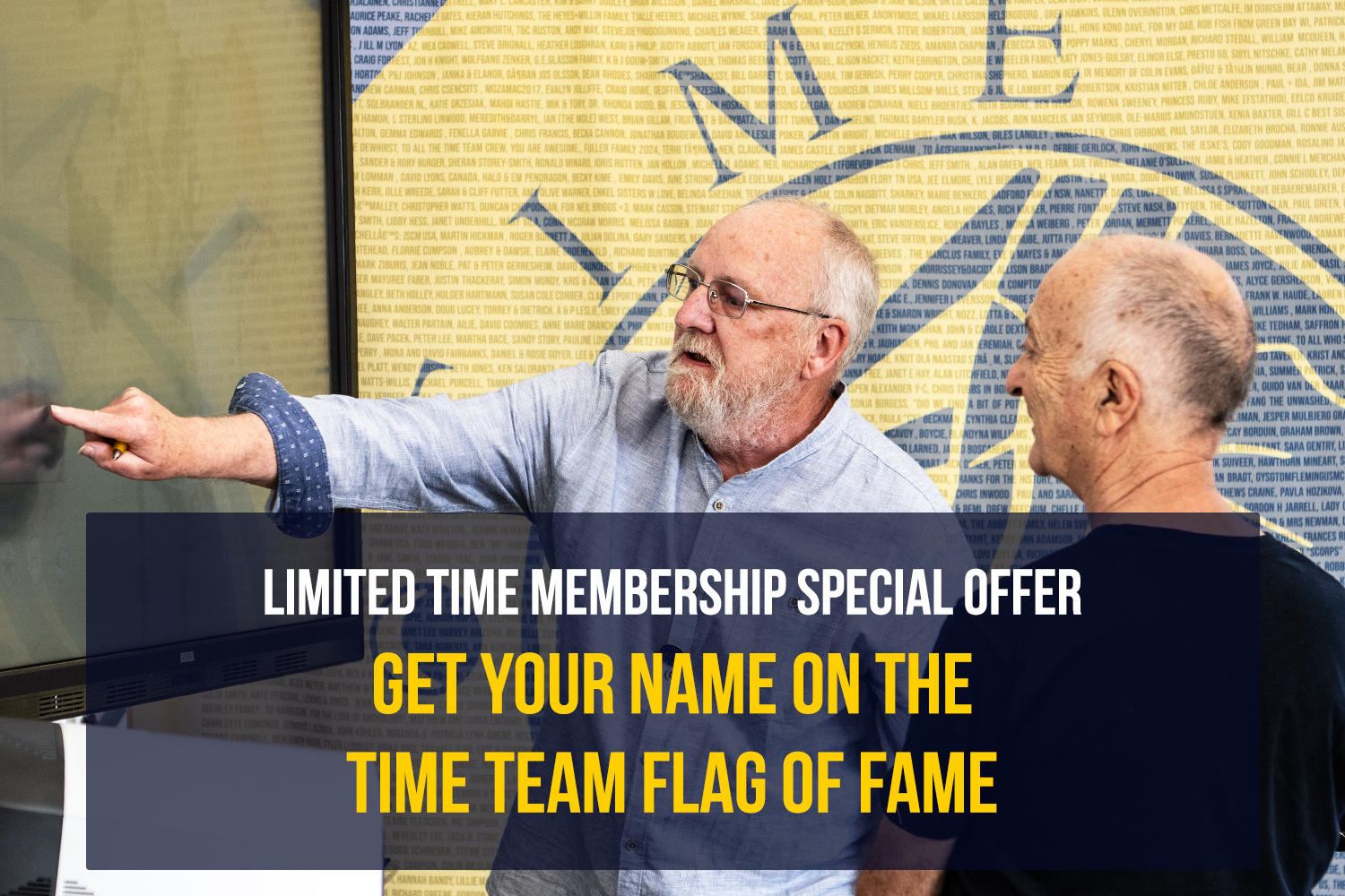 Continuing the popularity of the Time Team 'Flag of Fame' in previous years, we are offering the exclusive opportunity for ALL our members* to get their name on the next Flag for 2025!