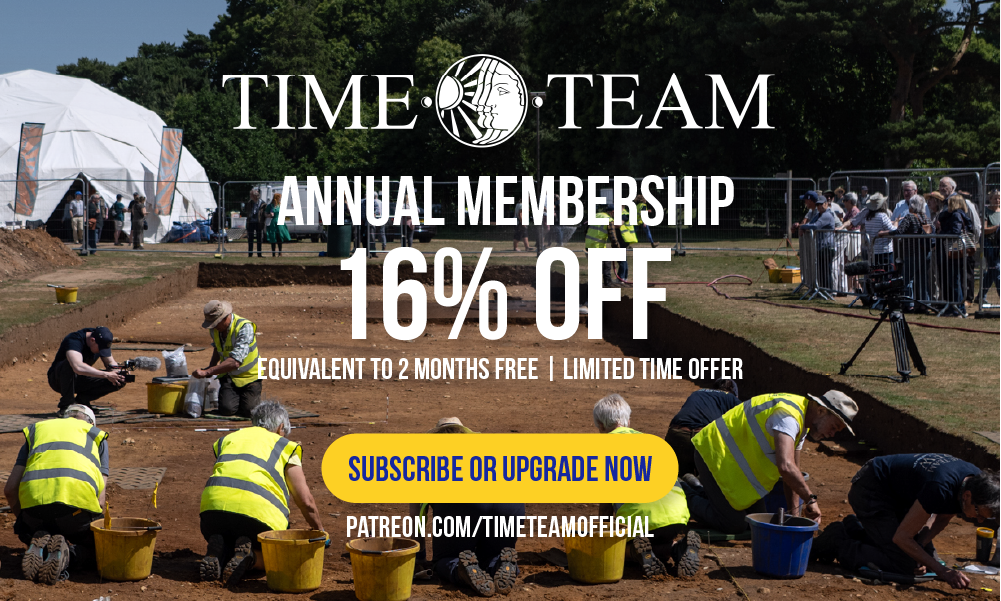 Ever considered subscribing to Time Team membership? Support Time Team’s future work whilst unearthing a hoard or membership benefits! There’s no better time to join the Time Team Community on Patreon than now!